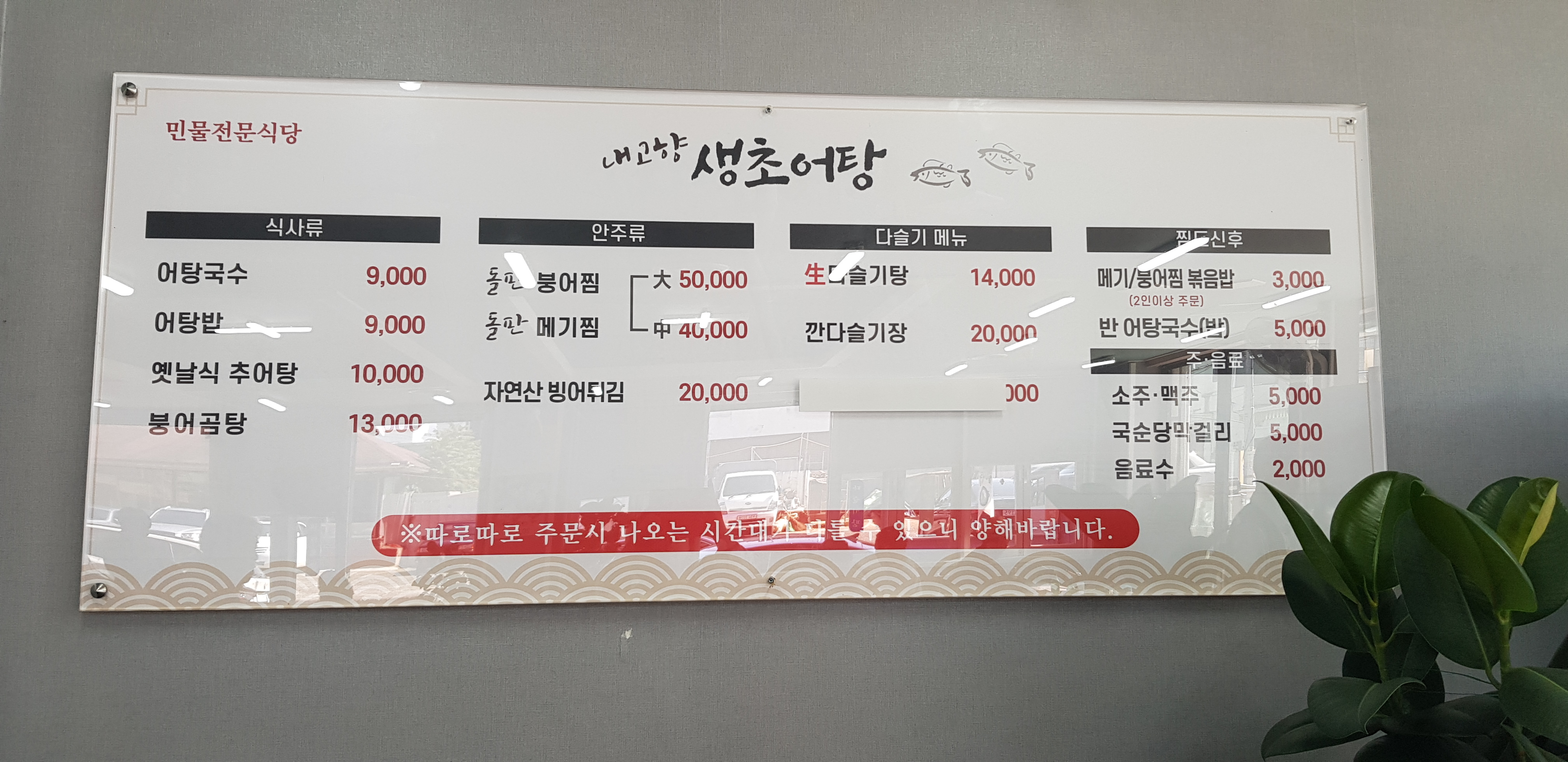 식당 벽에는 다슬기탕, 어탕국수, 붕어곰탕 등등 설명을 쭉~ 해놓은게 인상적이었습니다.