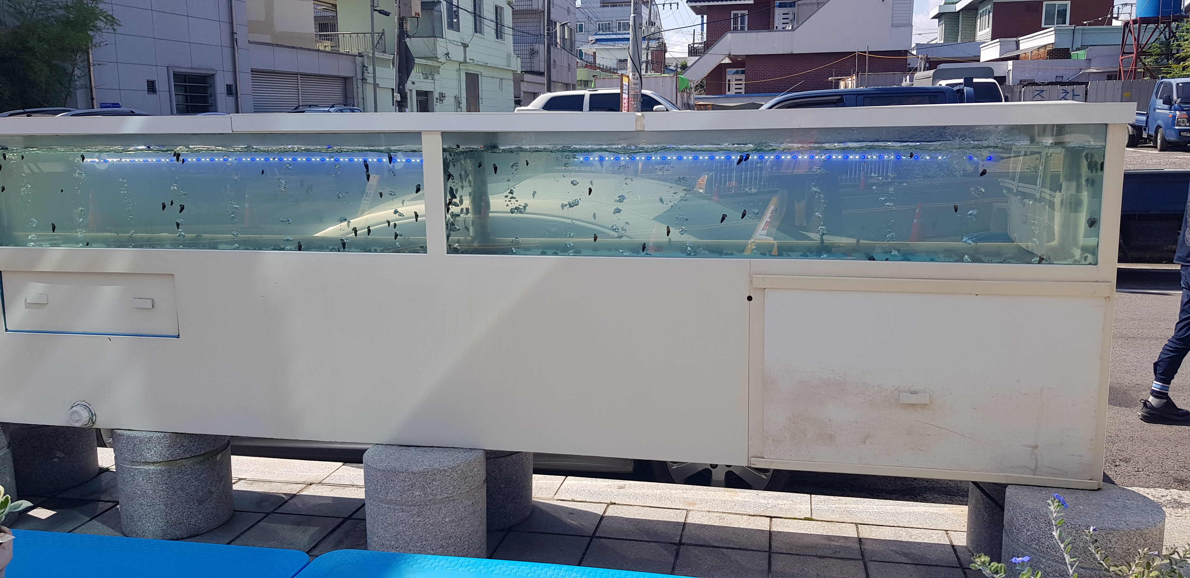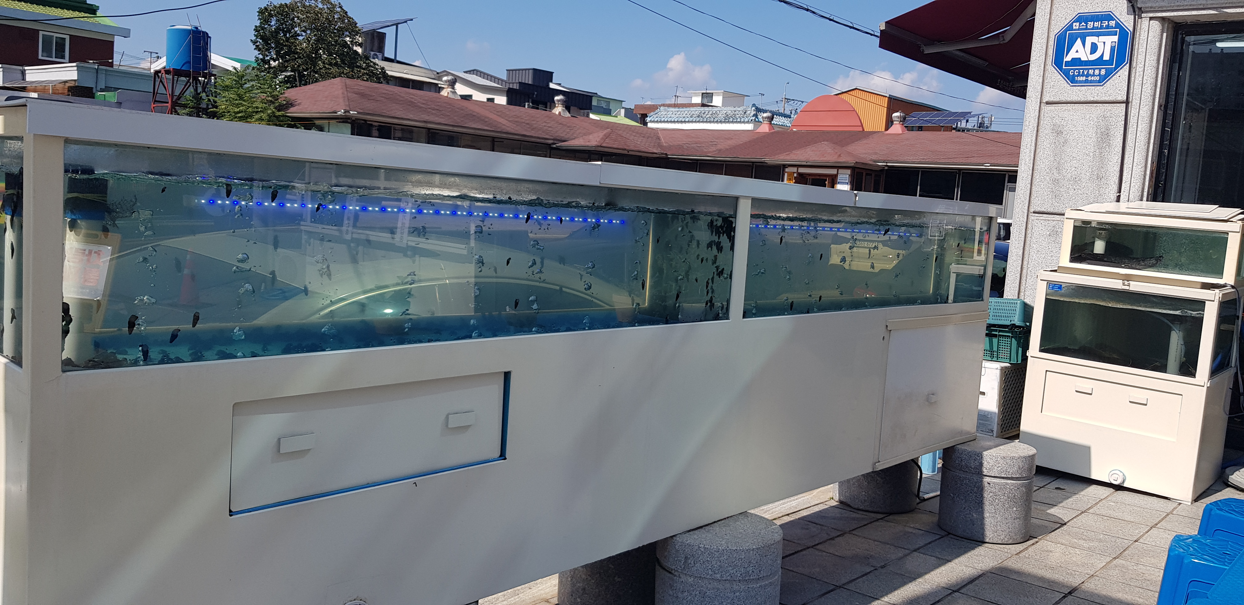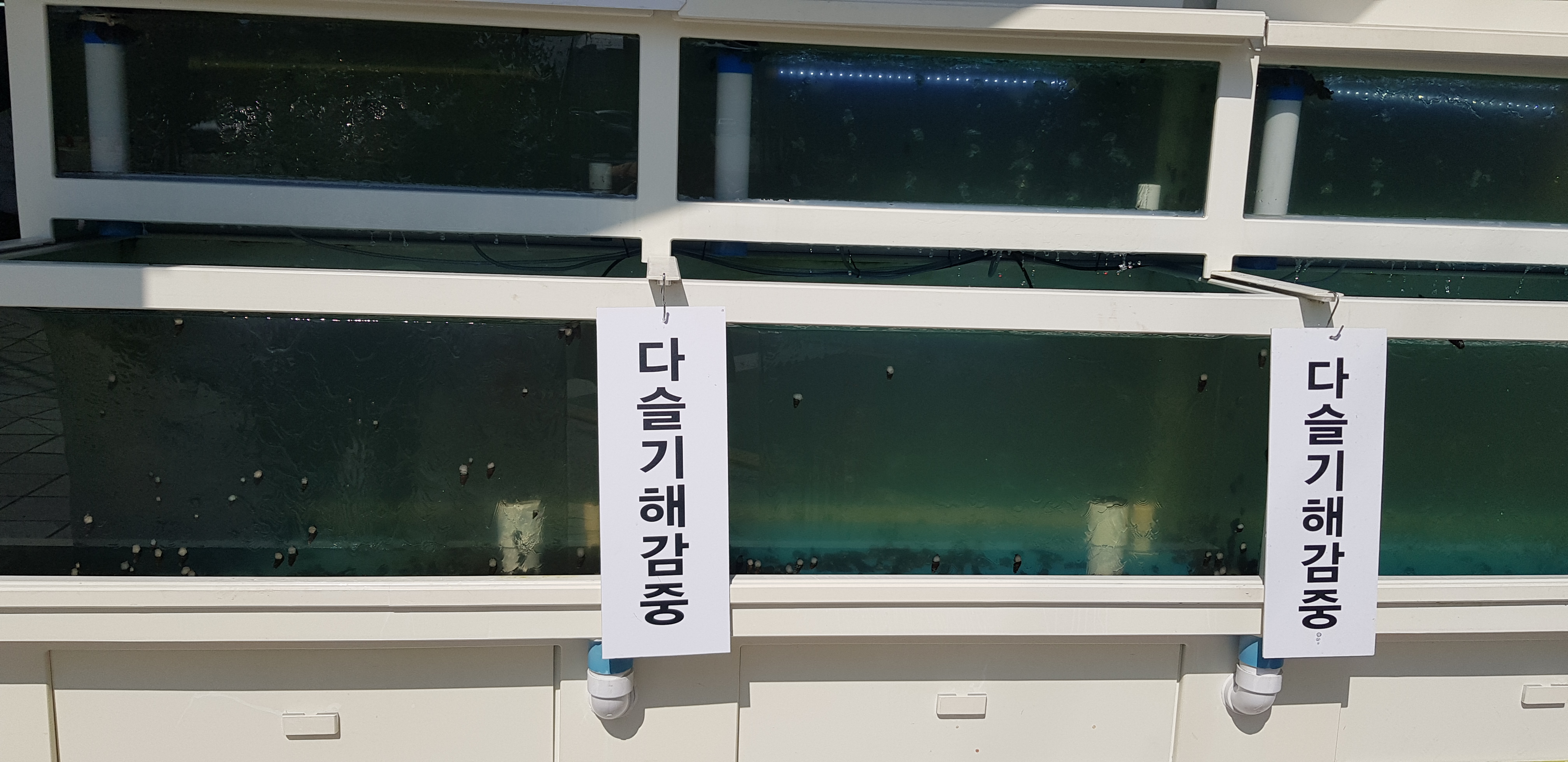 식당 입구에는 수족관에 다슬기들이 해감중이었습니다.