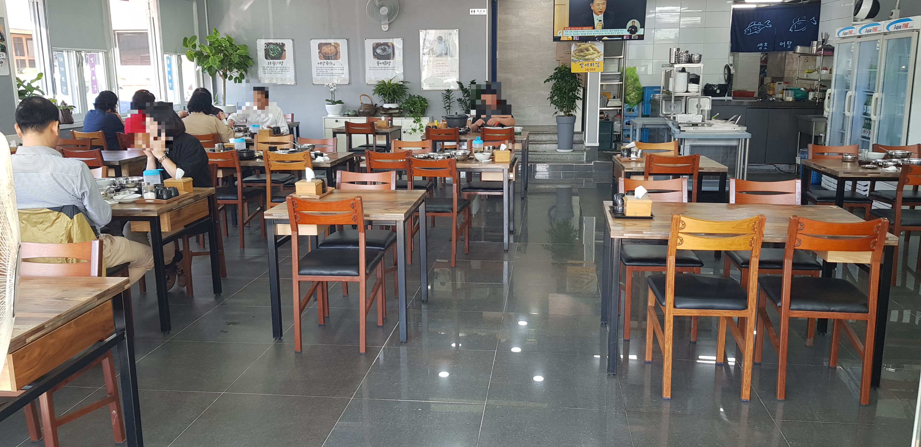 식당 내부 모습입니다. 한눈에 보기에도 청결하고 깔끔합니다. 바닥도 반짝반짝 깨끗해서 맘에 들었습니다.